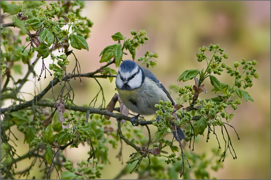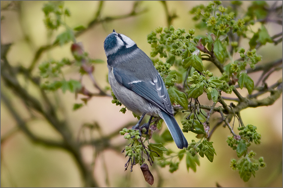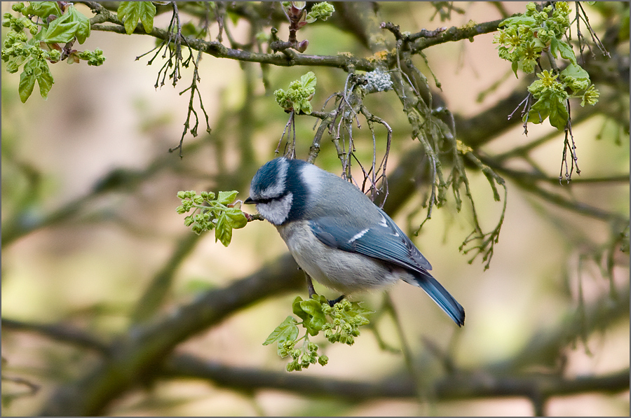 Blaumeise, vom Balkon fotografiert.