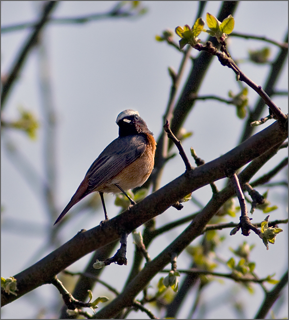Gartenrotschwanz, im Garten fotografiert. Die Heimat des Gartenrotschwanzes sind Parkanlagen, Obstbaumsiedlungen, Waldränder, lichte Waldungen oder auch Gärten. Er ist ein reiner Sommervogel (Heimzug April, Wegzug September) und überwintert als Langstreckenzieher vor allem in den Trocken- und Feuchtsavannen West- und Zentralafrikas, meist südlich von 15° Nord fast bis zum Äquator.