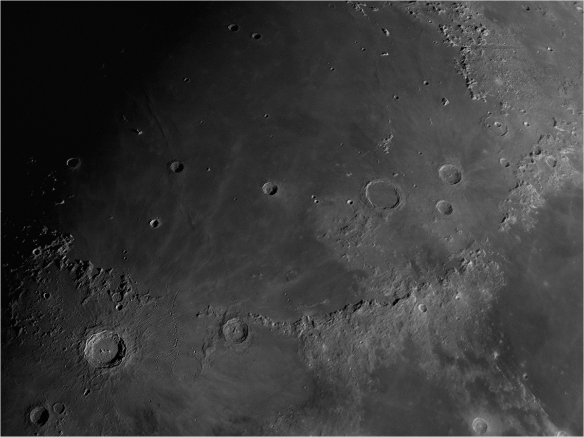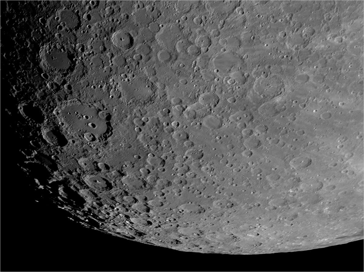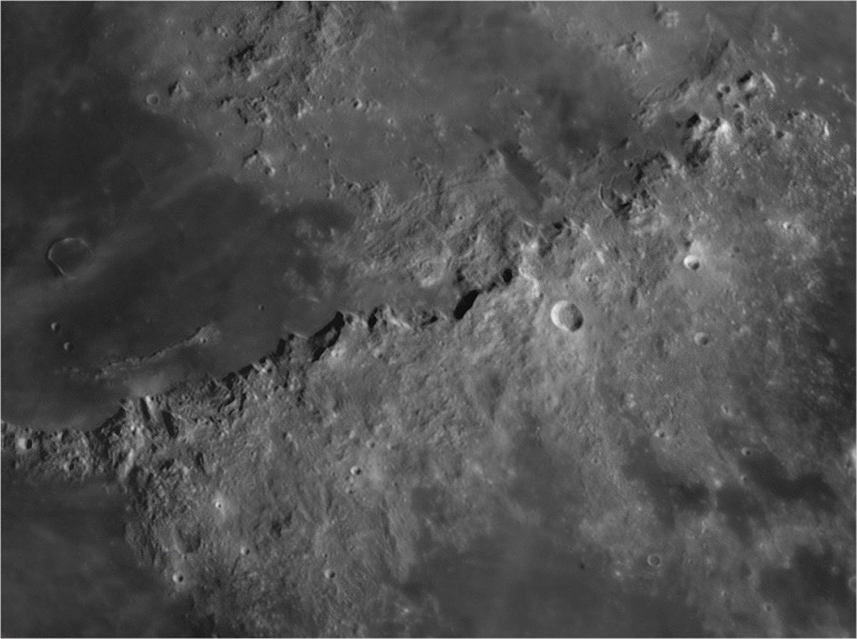 Berlin-Tegel am 26.12.2009 Intes-Micro A703 Deluxe - fokal FireWire-Kamera ImagingSource DMK 41AF02.AS, IR-Passfilter Vixen GP/DX, Boxdörfer MTS 3 SDI Bearbeitung mit AviStack und PS Montes Apenninnus