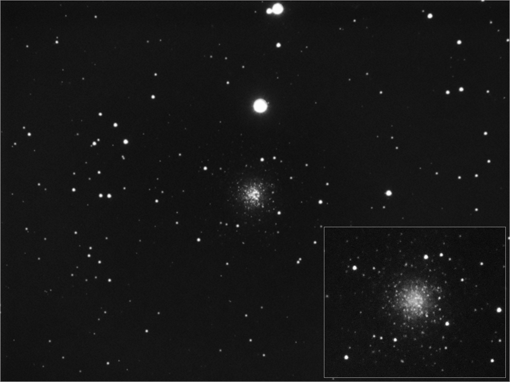 NGC 2419 - ein Kugelsternhaufen, auch als "Intergalaktischer Wanderer" bekannt. Entfernung ca. 300 000 Lj. Berlin-Tegel am 5.05.2008 Orion 80 ED ATIK 16HR, Astronomik CLS-Filter CCD Profi II Vixen GP/DX, Boxdörfer MTS 3 SDI Nachführung mit Starlight MX 716 am Rubinar 90/500mm, STAR 2000 7 x 4 min. |