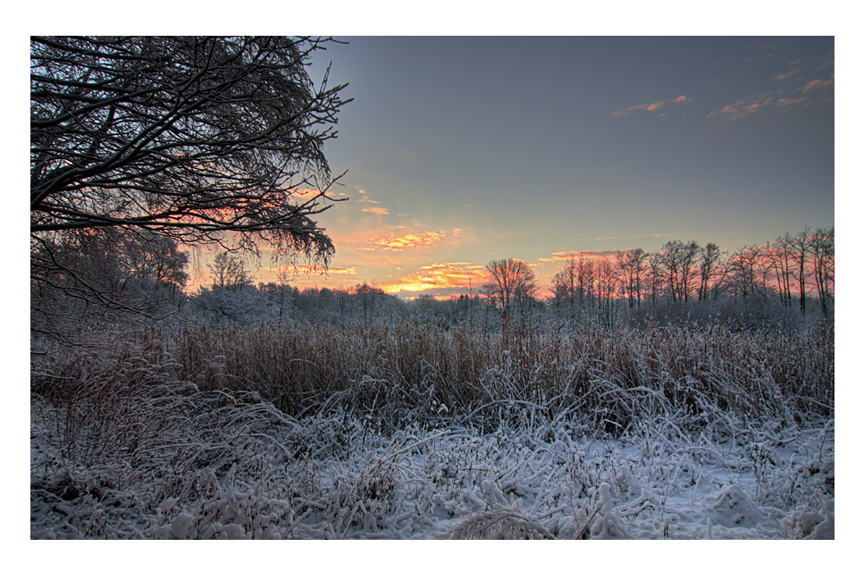 Winterlich, Sonnenaufgang am Tegeler Fliess